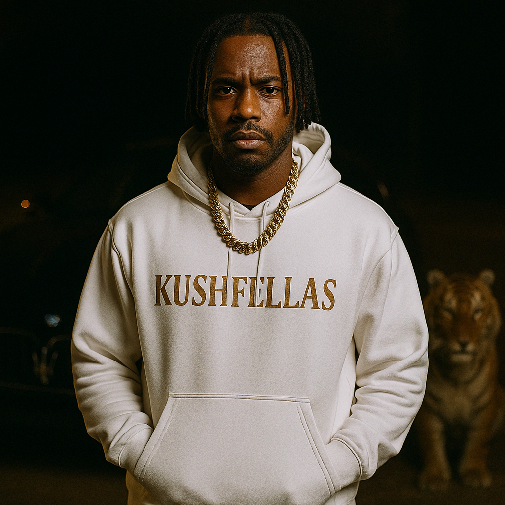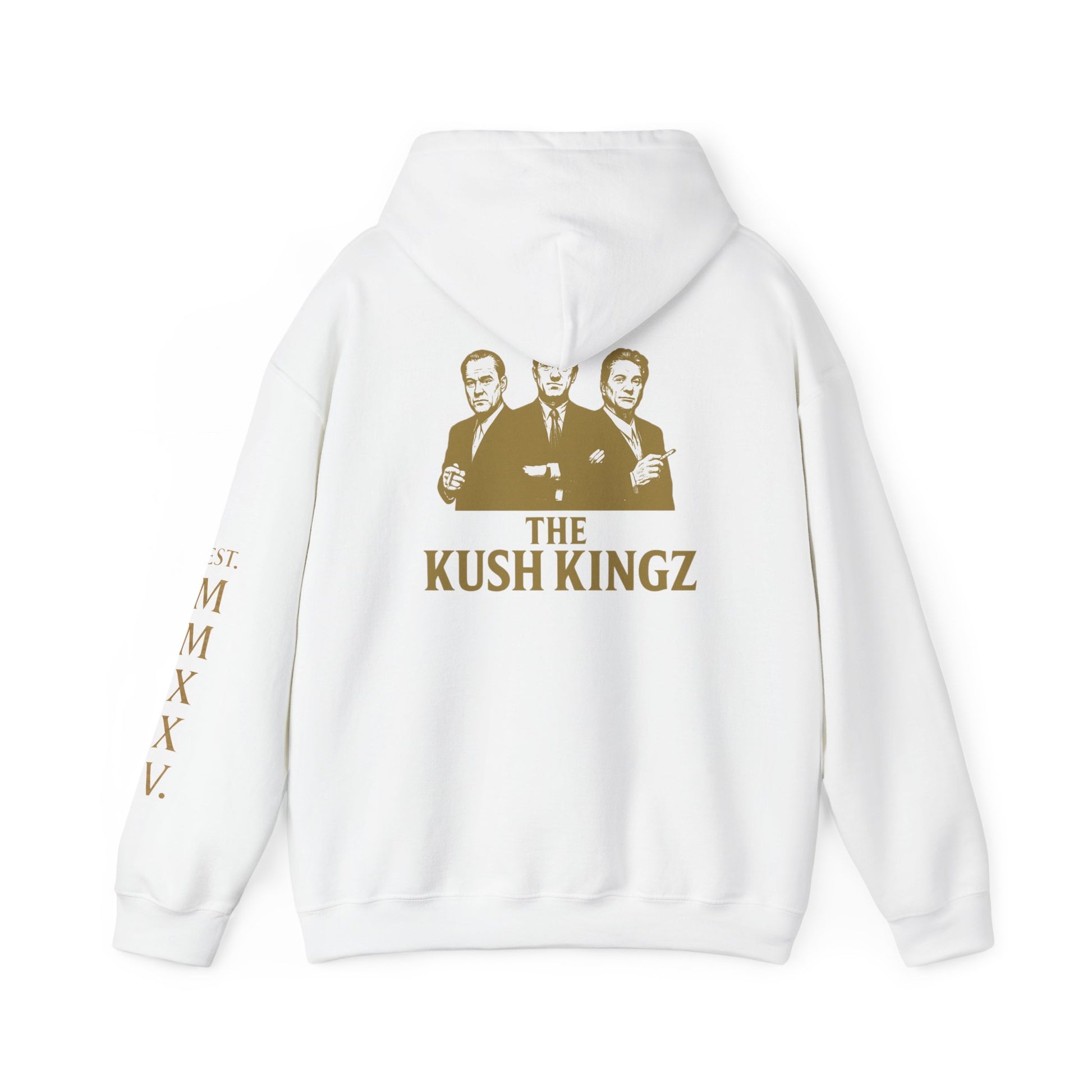 Step into the empire with our muted-gold chest hit and mafia-inspired back art. Built for comfort and presence—perfect weight, soft interior, and that Kush Kingz smoke-luxury vibe.